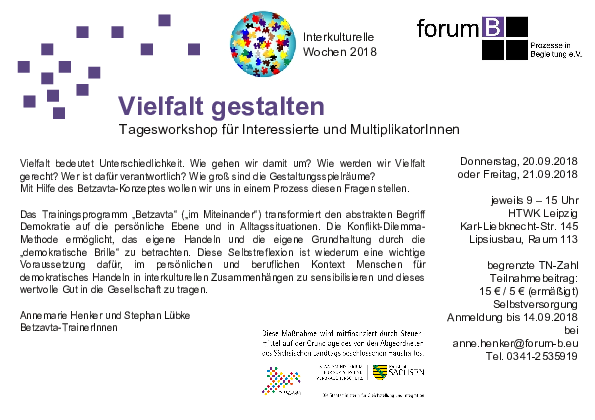 Diesen und anderen Fragen wollen sich Annemarie Henker und Stephan Lübke gemeinsam mit den Teilnehmenden und mit Hilfe des Betzavta-Konzeptes stellen.